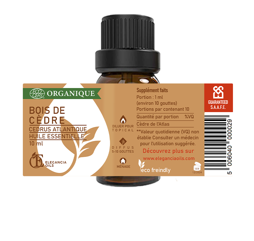 L'huile de bois de cèdre est obtenue à partir du cèdre du Moyen Atlas et contient des composés bénéfiques pour la santé. Ces composés contiennent des propriétés antiseptiques, des propriétés anti-inflammatoires, des propriétés astringentes, des propriétés antispasmodiques et des propriétés antifongiques. Elle lutte contre la carie dentaire. Aide à induire le sommeil. L'huile de bois de cèdre repousse les insectes et les tiques. L'huile essentielle de bois de cèdre combat la chute des cheveux. Il aide à éliminer la pelade, une condition qui entraîne la perte de cheveux et conduit à l'apparition de petites taches rondes et chauves. Aide à cicatriser les coupures et les plaies cutanées. L'huile essentielle de bois de cèdre soulage la polyarthrite rhumatoïde. L'huile de bois de cèdre traite les maladies respiratoires. L'huile de bois de cèdre est un tonique et un stimulant pour la santé. L'huile de bois de cèdre est utile pendant les jours de menstruation..